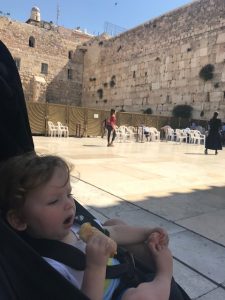 Monday morning Joshua made his way to Aish for cool classes with interesting Rabbis, I was so glad he finally was able to make time to get some Torah time in as it can be hard between the workload and hanging out with his family. While he was there Levi and I got spiritually fed on our own too! We went to the OU center (located on Keren Hayesod, a 3 minute walk from our home) and went to a “Parsha Parenting” class. 2 Jewish moms from the area brought great insight on how we can learn from this week’s portion lessons on how to handle children. I took away some good thoughts, what really stuck with me is that from a young age it is important for your kid to learn that Mommy knows what is best, and knows right from wrong. If a child asks his mom to do something, and the mom says no, and the kid says “WHY NOT?” … instead of reasoning with your kid over why he may or may not do something, a mom should just be able to say “because mommy said no”, and the kid will understand that means it’s right.