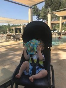 Sunday, the Monday of this country, and Sonday for us. We are still New Yorkers at heart so we spend the day with sort of adventure. The weather was HOT so we decided to head to a pool and let Levi crawl around, swim around, and be free. On Shabbat we spent a lot of time walking, so a lot of stroller time for the baby, so it’s important that the day after we allow him to have lots free & floor time! It is a fun day– we finished the day by eating leftovers from Shabbat in the park. (the park AKA in front of our apt!) Now I let Levi eat a watermelon by himself, which causes a mess, but even his mess makes me happy. Plus we have a washer dryer in the apartment so have been doing laundry every other day! (not really by choice, keep in mind we had to pack our lives for 3 months in 1 suitcase)
